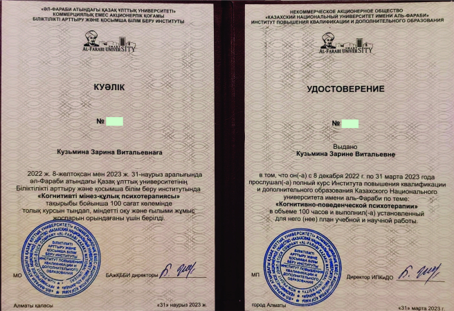 Пройденный курс: Когнитивно-поведенческой психотерапии